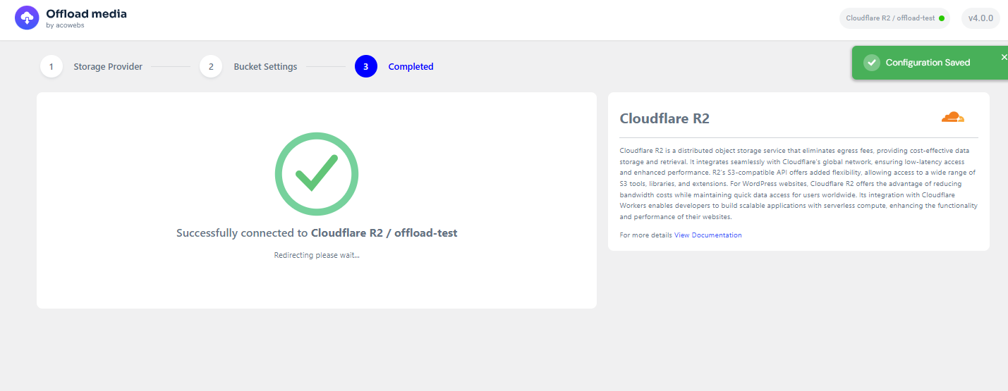 Congratulations! You’ve successfully configured the Offload Media plugin with Cloudflare R2. Your media files are now ready to be seamlessly offloaded to your cloud storage.