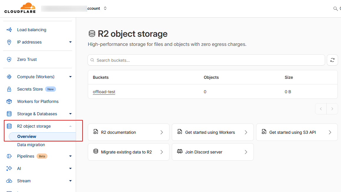 In the Cloudflare Dashboard, scroll down the left sidebar to find R2 Object Storage, then click on it.