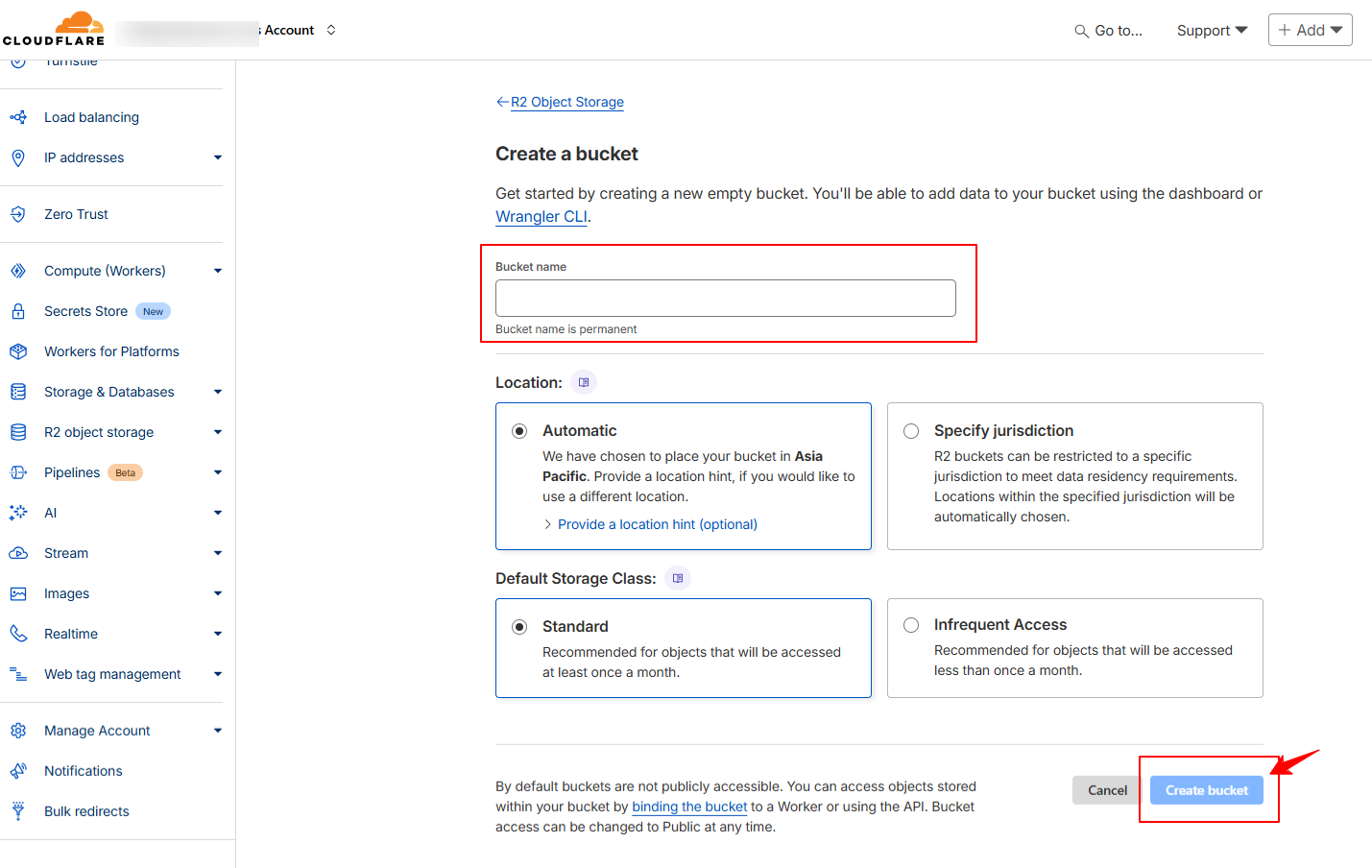 Note: If your Account ID looks like 7de1234a588187060ff5f50ff69c4bde525.r2.cloudflarestorage.com, remove the .r2.cloudflarestorage.com part and use only 7de1234a588187060ff5f50ff69c4bde525.