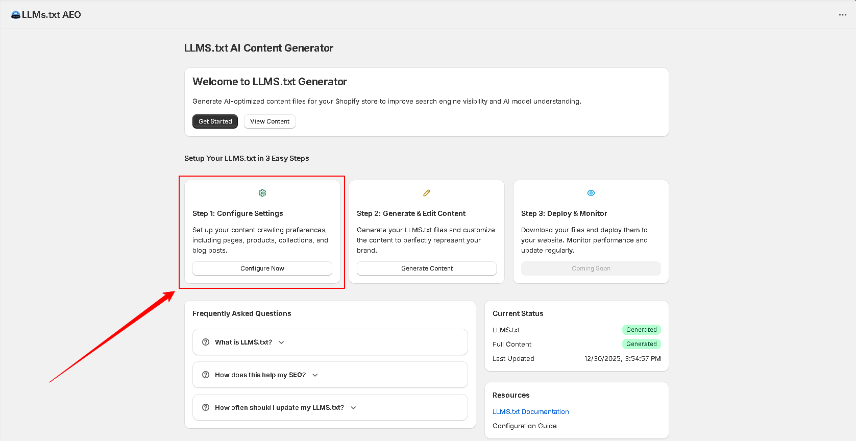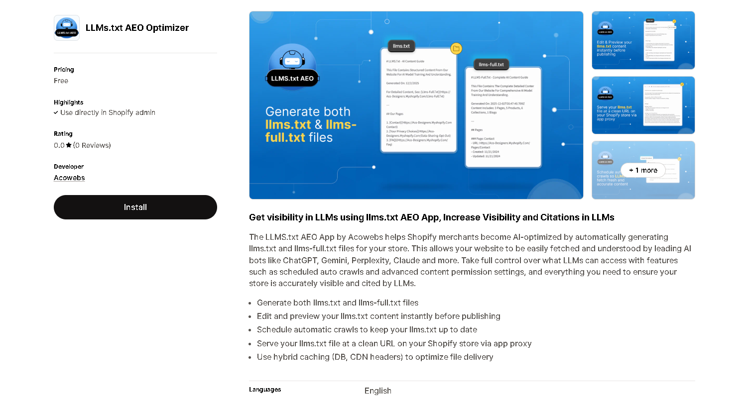 Install the LLMs.txt AEO app from the apps page.