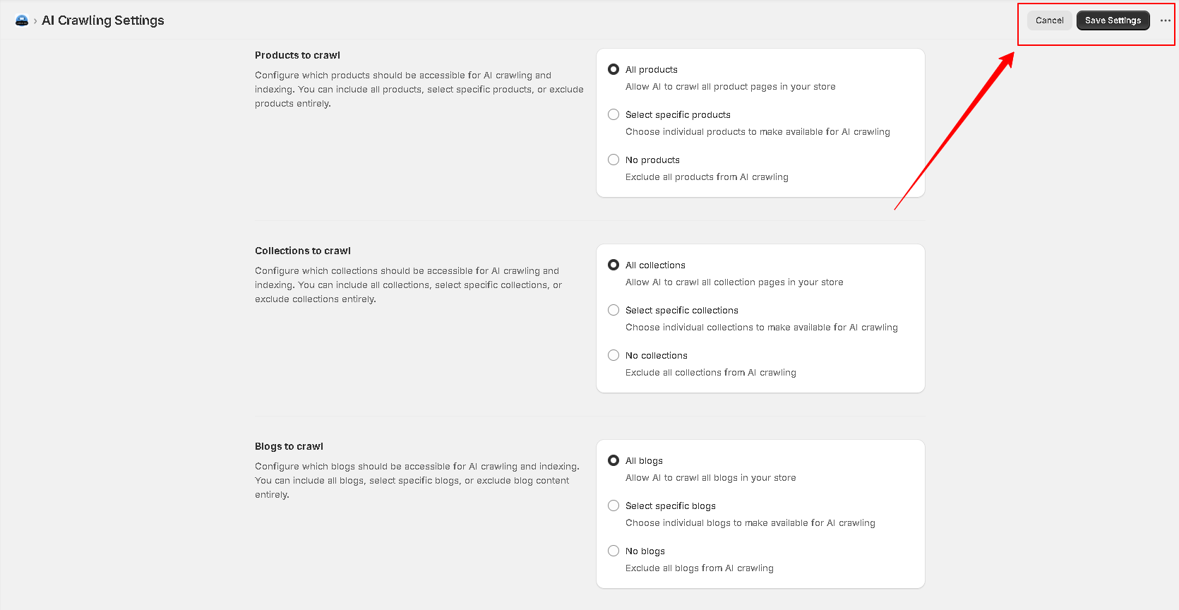 Once setting the crawling options, click on to the Save Changes button on the top right side of the page.