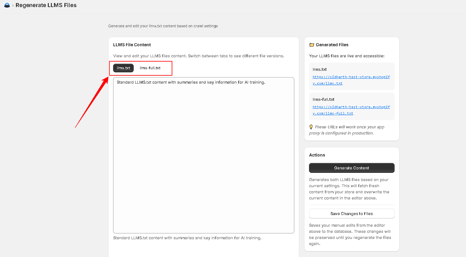 You have two tabs for generating the content. LLMs.txt and LLMs-full.txt.