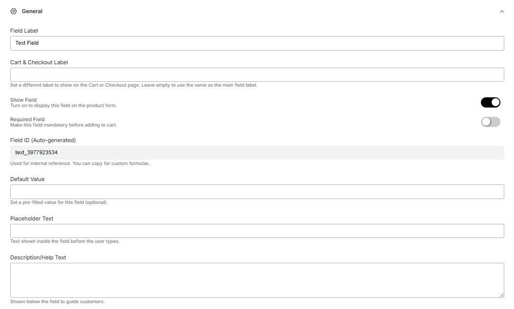 Field Label: You can set a label for the field.