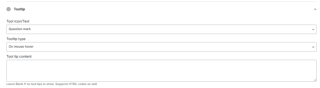 Tooltip Content: You can type the required content here
