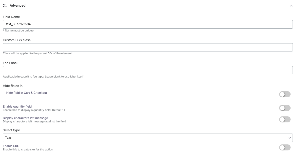 These are the Advanced settings of the Text field