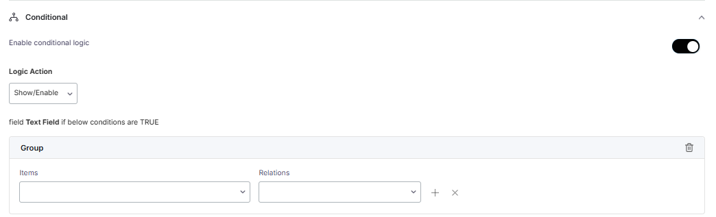 Below are the Conditional settings of the text field.