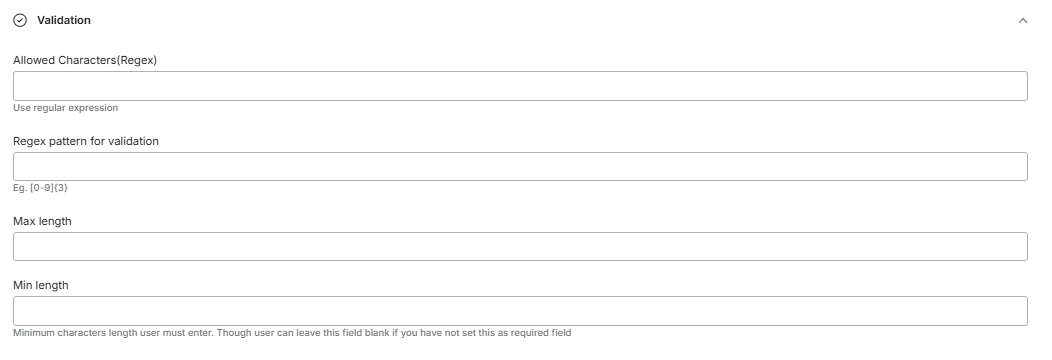 Allowed Characters(Regex): You can add a regular expression for the allowed characters.
