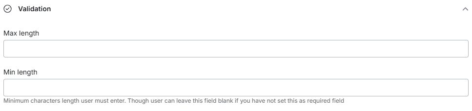 Max length: You can set the maximum length for the field.