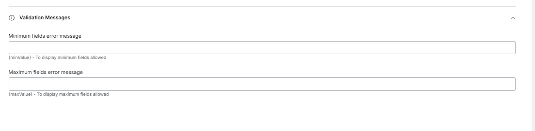Below are the Validation Messages settings.