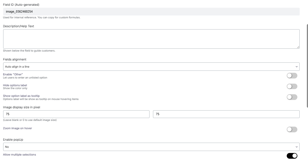 This field is for adding image options, and you can select options by looking at their images.