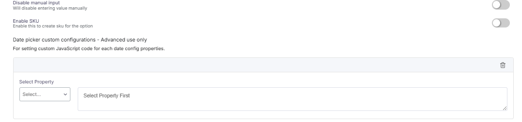 Then you can configure the date picker for advanced uses.. You can add custom JavaScript code for each date configuration property such as min date, max date, enable, disable, default date, or mode.