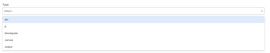 You can also choose the field type as div, paragraph, blockquote, canvas, or output.