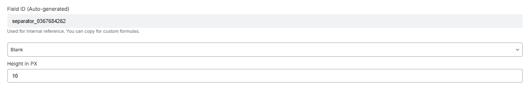 A separator field is used to add space between different fields or sections.