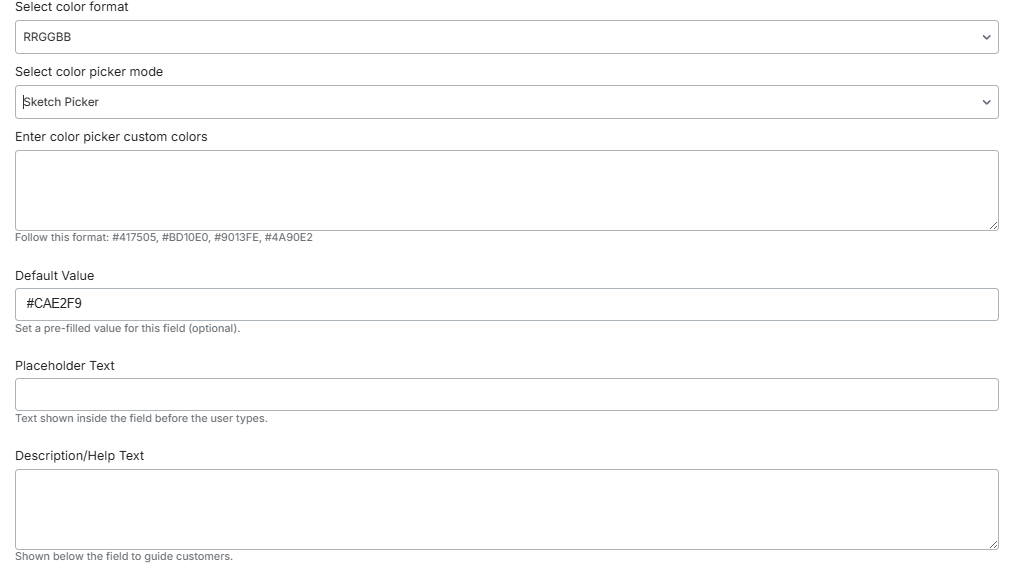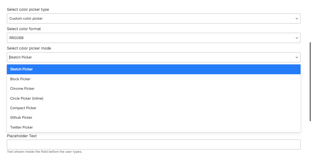 All other settings are the same. If you choose the custom color picker, the following options are available.