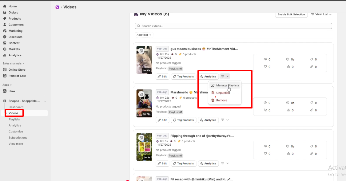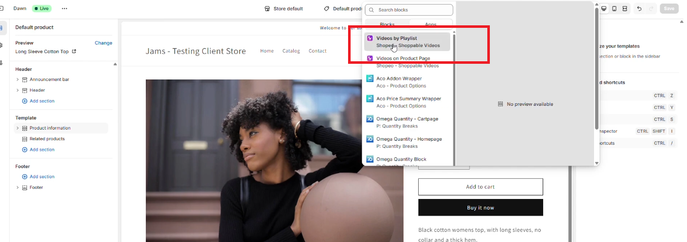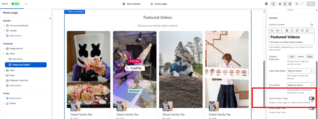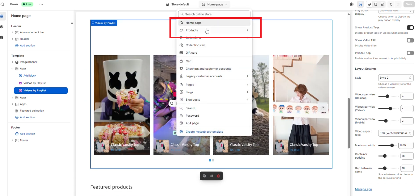Once your playlists, tagging, and theme setup are complete, it’s important to verify how everything appears and functions on your storefront. Follow the steps below to ensure the videos and shopping experience work smoothly.
