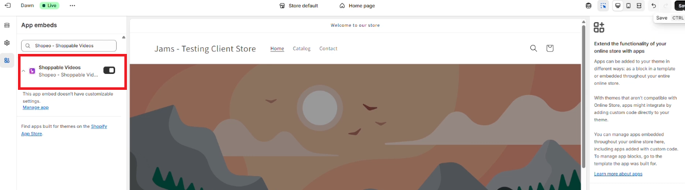 Once enabled, your theme becomes capable of displaying Shopeo video elements.