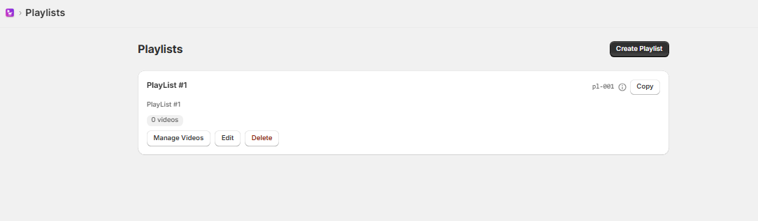Playlists help you organize your videos in a structured way and control how they appear on your storefront. Below is the step-by-step workflow for creating and managing playlists.