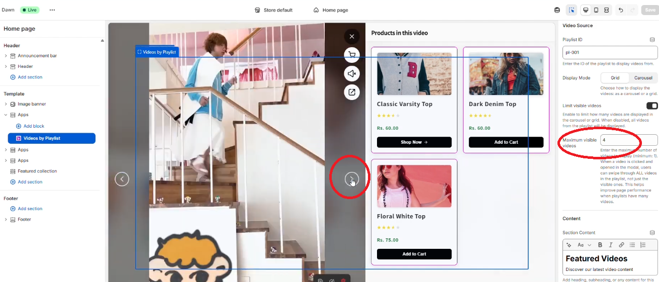 This block is responsible for displaying the shoppable video playlist on your storefront.
