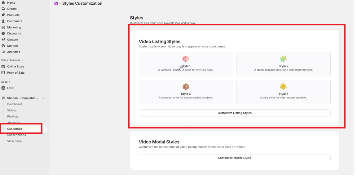 The Shopeo app allows you to analyze video performance and fully customize the appearance of your playlists and video popups. This helps you optimize both engagement and visual branding.